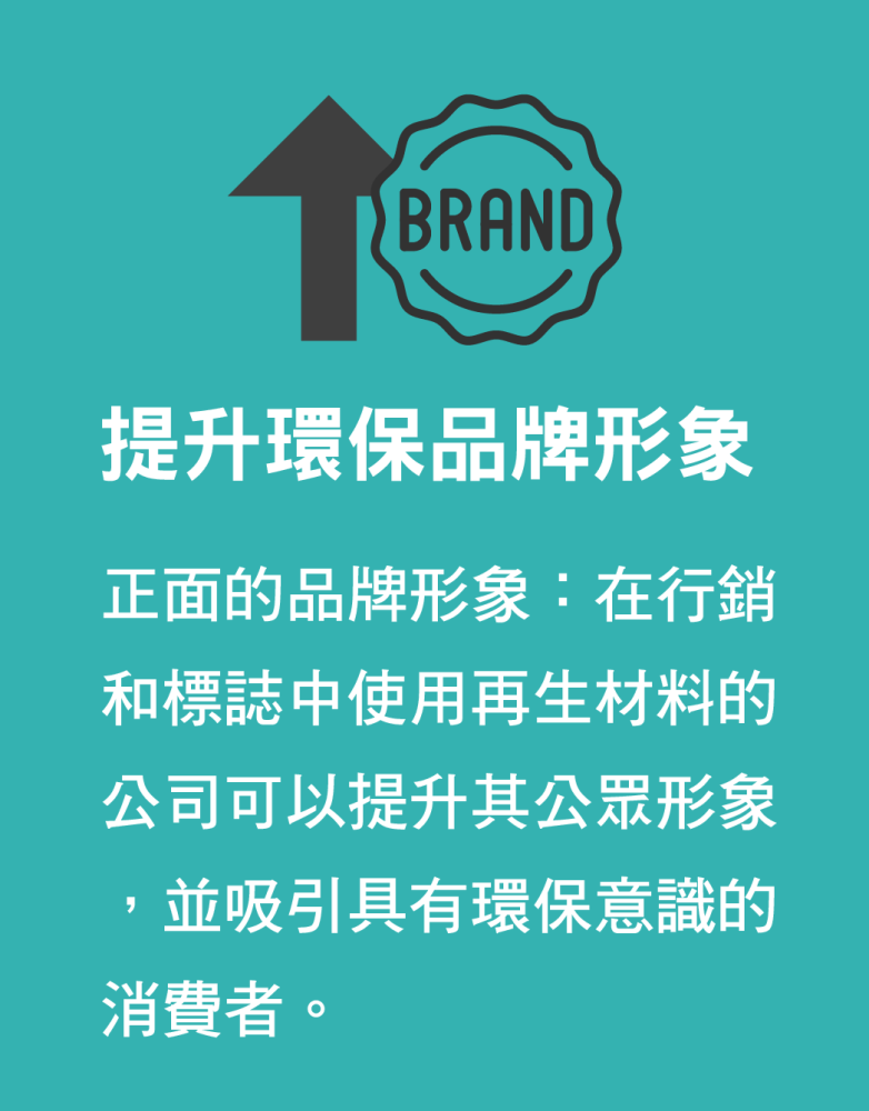 正面的品牌形象:在行銷和標誌中使用再生材料的公司可以提升其公眾形象,並吸引具有環保意識的消費者。